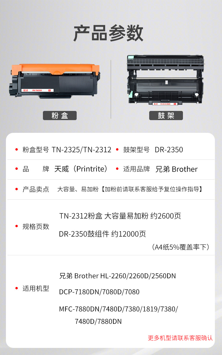 參數(shù) [品牌] 天威 [型號(hào)] 天威硒鼓TN2225粉盒 [單位] 個(gè)
