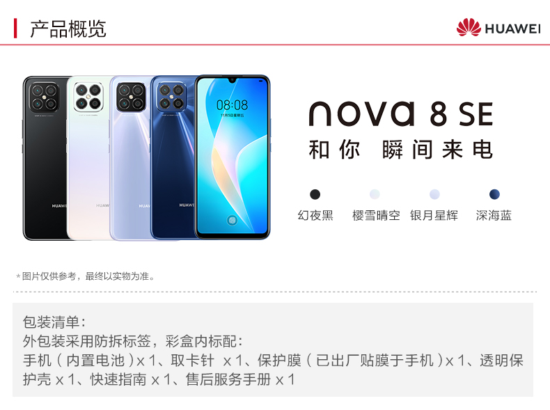 包裝清單 手機(jī)(內(nèi)置電池) 1 件 快速指南 1 件 取卡針 1 件 透明保護(hù)殼 1 件 售后服務(wù)手冊(cè) 1 件 保護(hù)膜(已出廠貼膜于手機(jī)) 1 件