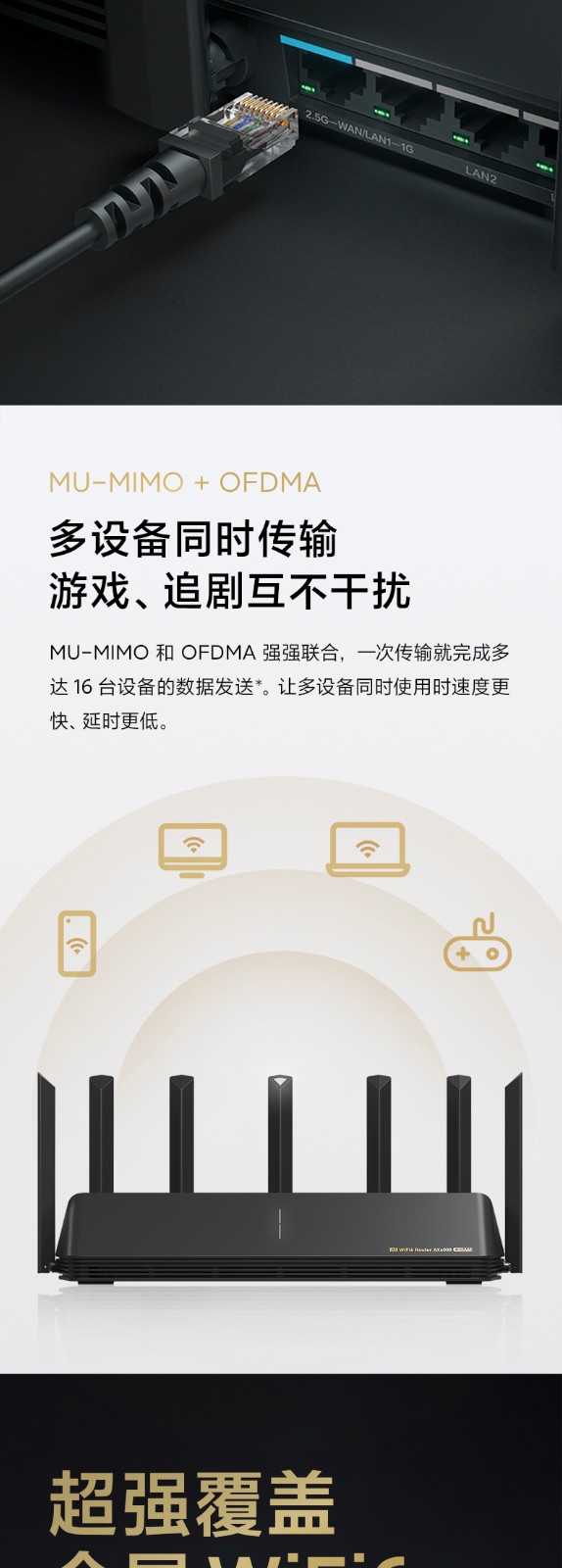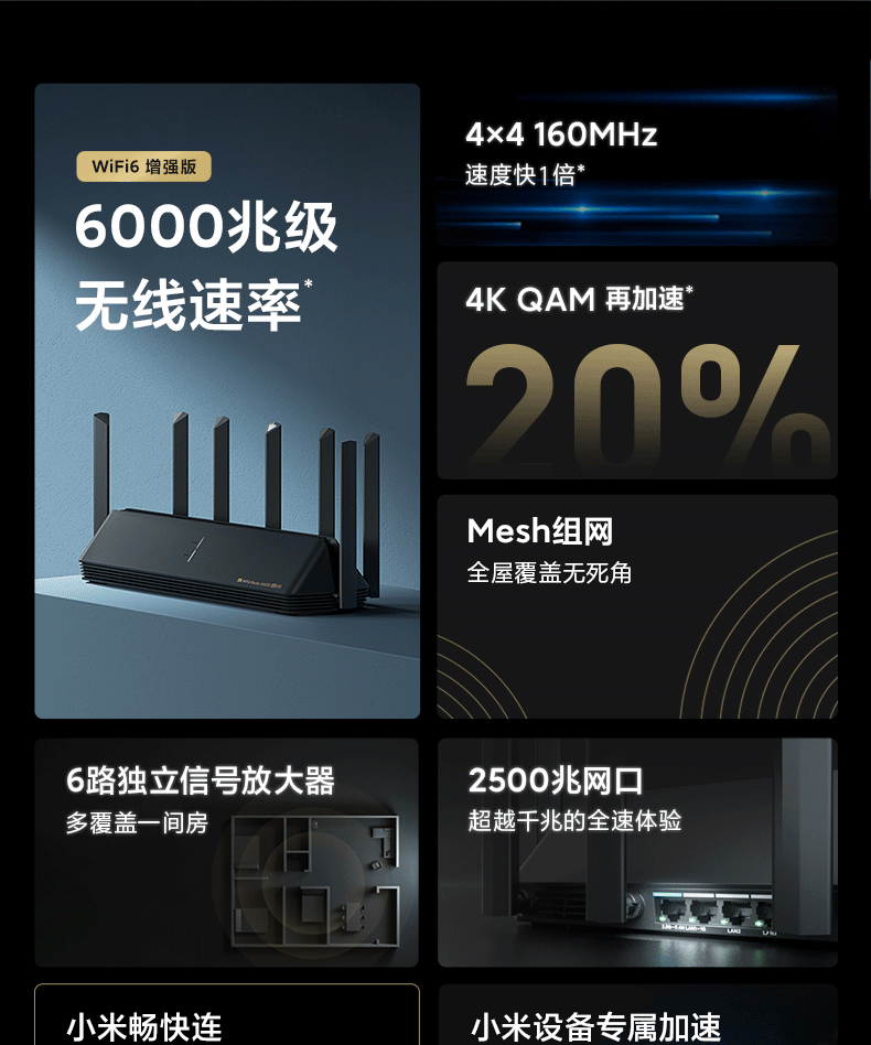 【旗艦WiFi6】小米路由器AX6000WiFi6增強(qiáng)版家用千兆端口5G雙頻無(wú)線速率Mesh路由大戶型穿墻王全屋智能6000