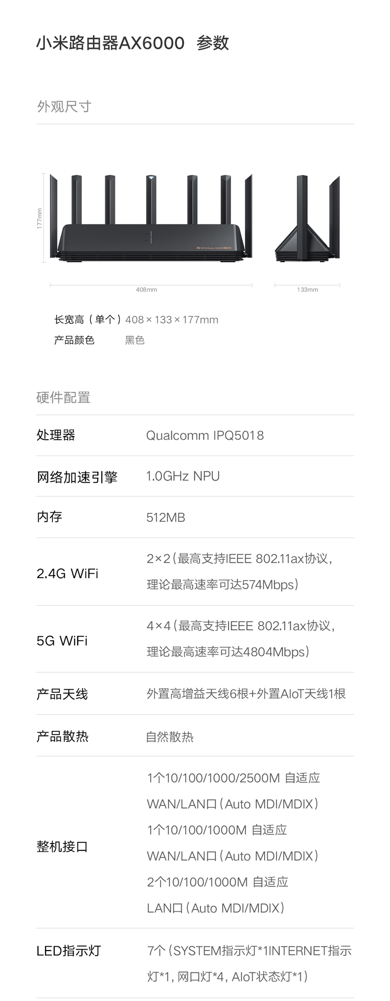 參數(shù) [品牌] 小米 [型號(hào)] 小米路由器AX9000家用千兆端口 [單位] 臺(tái)