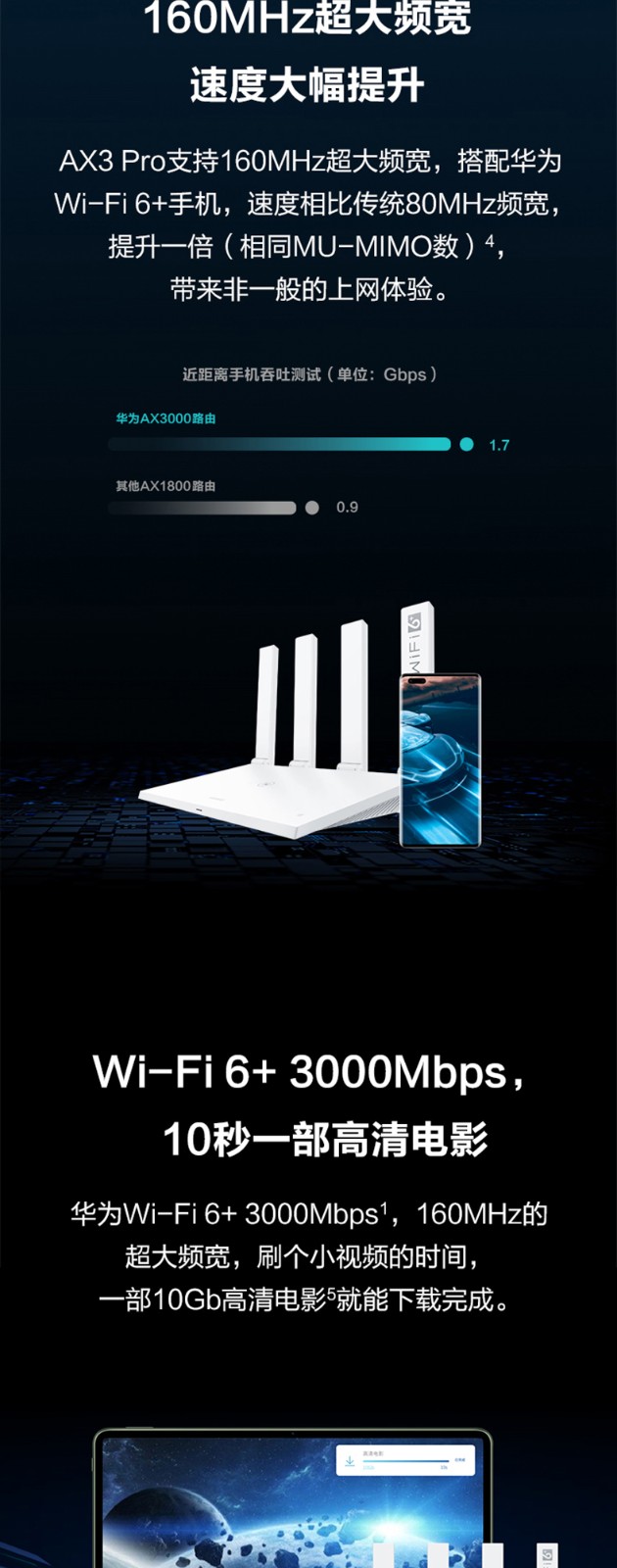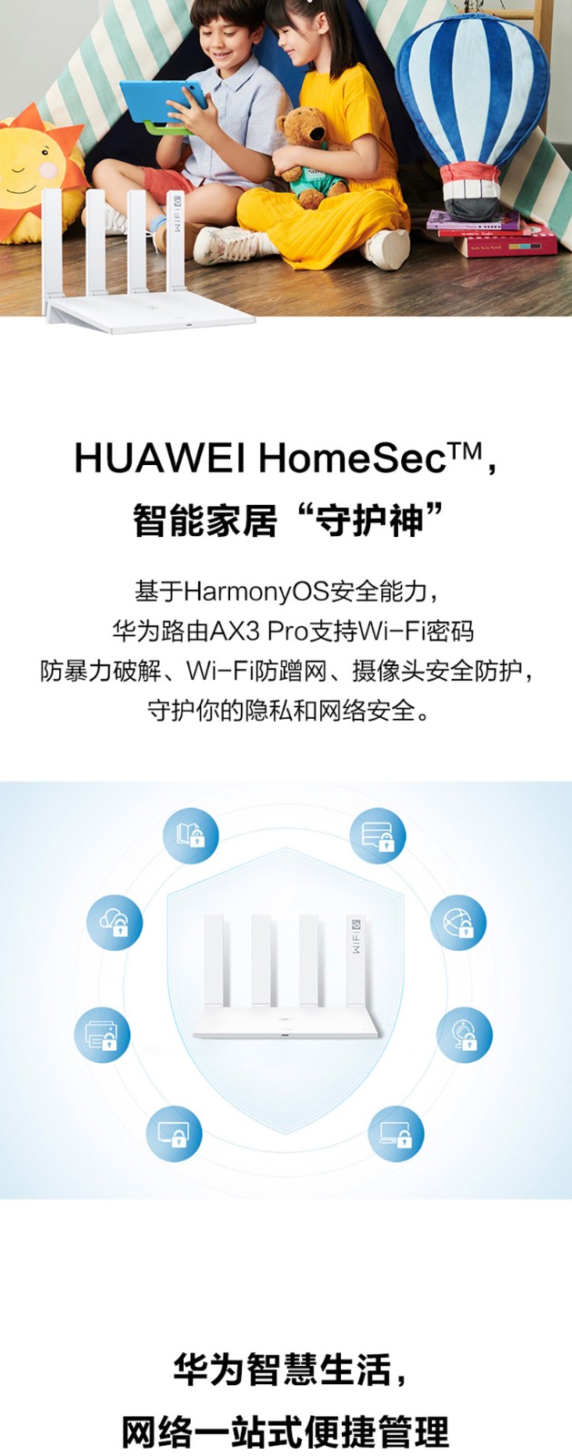 華為路由AX3 Pro wifi 6+千兆端口3000M無線速率上網(wǎng)保護(hù)碰聯(lián)網(wǎng)學(xué)生家用高速路由5G雙頻