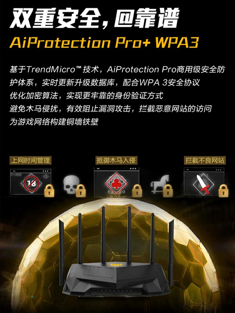 asus華碩TUFGAMINGAX5400穿墻王高速wifi6AX3000升級版雙頻無線千兆企業(yè)級wifi家用游戲加速端口路由器 基礎款