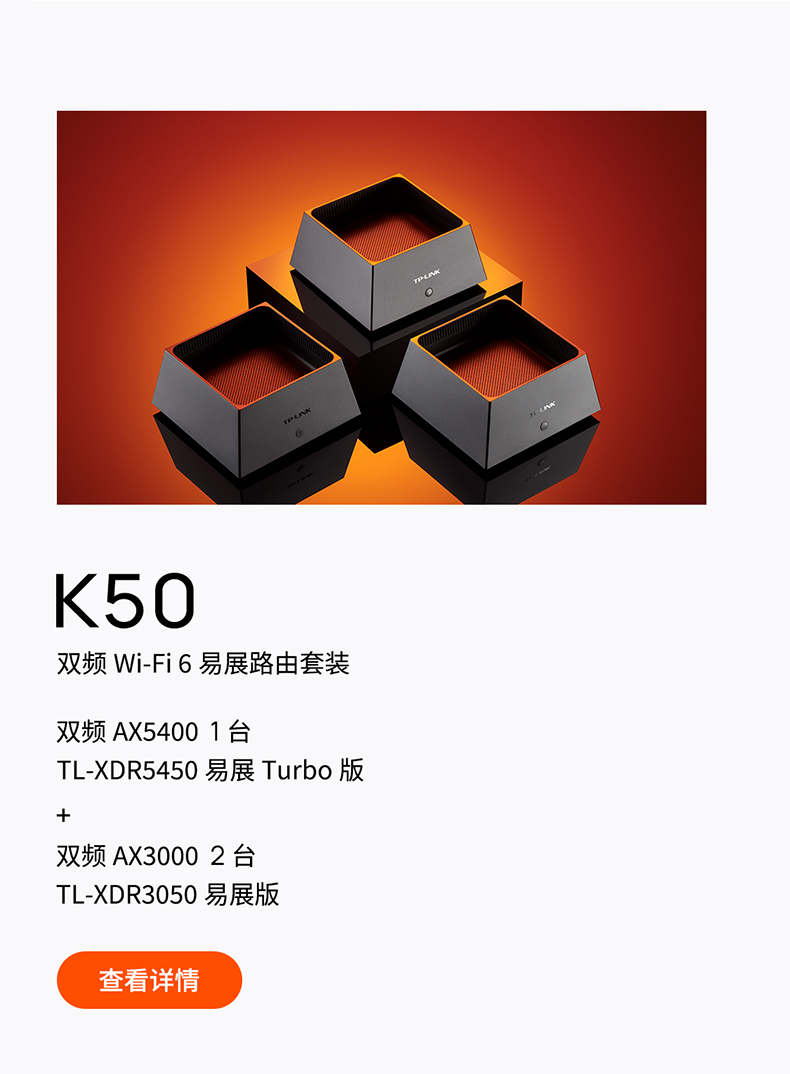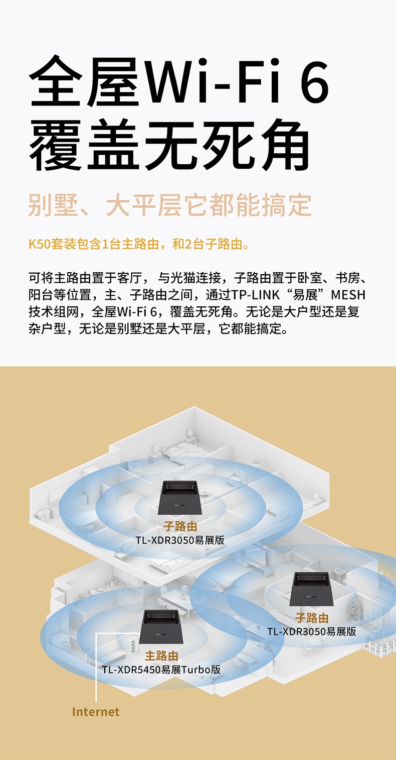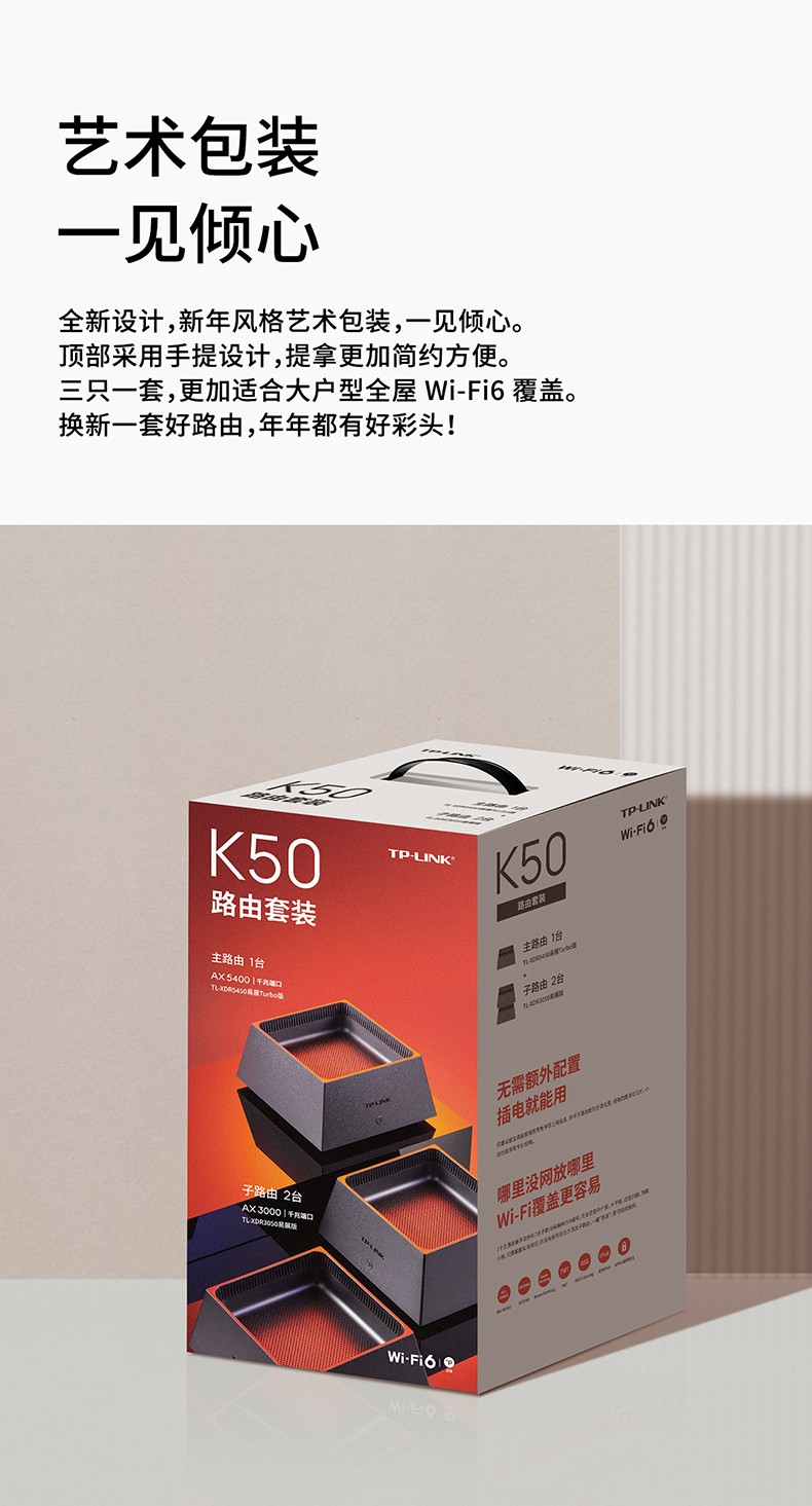 TP-LINK WiFi6全屋覆蓋套裝 AX5400+AX3000 mesh子母路由器 全千兆高速5G千兆端口tplink家用無線大戶型K50