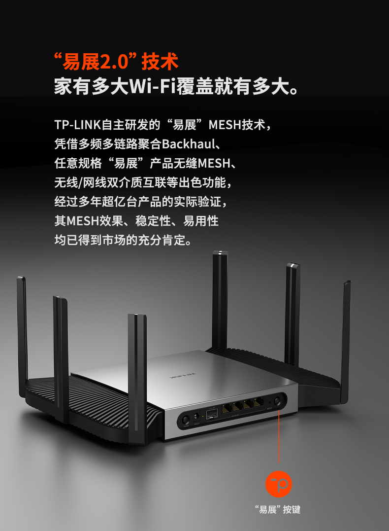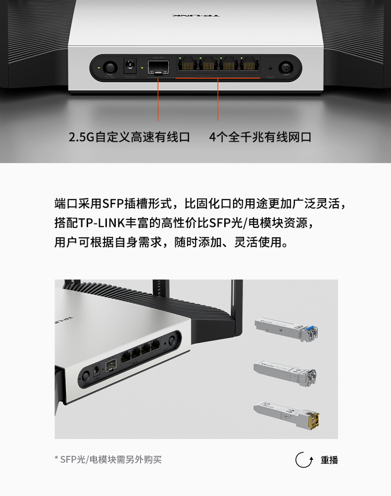 TP-LINK WiFi6 AX5400無(wú)線路由器 千兆端口家用高速wifi穿墻王2.5G自定義口tplink 5G雙頻mesh大戶型xdr5480 光口模塊